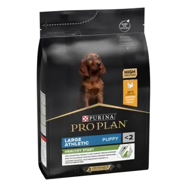 Oferă-i puiului tău de câine elementele nutriționale de care are nevoie pentru o creștere și o dezvoltare sănătoasă cu Purina PRO PLAN Healthy Start. Fiecare porție de hrană uscată de înaltă calitate reprezintă nutriție special concepută pentru căței și conține bucăți de pui de înaltă calitate ca ingredient principal. Produsele Purina PRO PLAN® Healthy Start conțin colostru, care ajută la întărirea răspunsului imunitar al cățeilor cu până la 50% mai mult. Colostrul ajută, de asemenea, la optimizarea echilibrului microflorei intestinale - evitând scaunele moi ale cățeilor, care sunt atât de frecvente în timpul perioadei de creștere. Purina PRO PLAN® Healthy Start conține niveluri ajustate de proteine și grăsimi pentru a promova creșterea sănătoasă și sănătatea pe termen lung, precum și nutrienți care susțin articulațiile sănătoase. Purina PRO PLAN Healthy Start LARGE ATHLETIC PUPPY este potrivit pentru puii de câine de talie mare și constituție atletică (peste 25kg).