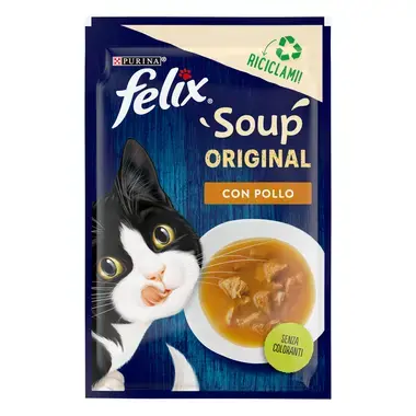 Adaugă hrana umedă pentru pisici FELIX® Soup în dieta zilnică a năzdrăvanului tău și vei fi răsplătit cu un mieunat recunoscător.